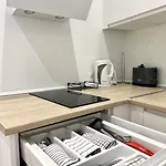 Het appartement biedt koffie- en theevoorzieningen en een keuken met een koffie/theezetapparaat, een koelkast en een broodrooster aan.